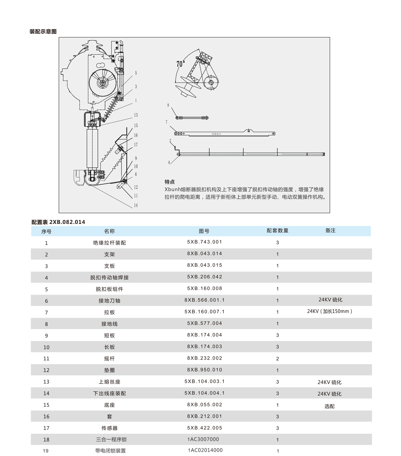 Xbunh熔断器脱扣机构及上下座增强了脱扣传动轴的强度,增强了绝缘拉杆的爬电距离,适用于新柜体上部单元新型手动、电动双簧操作机构。