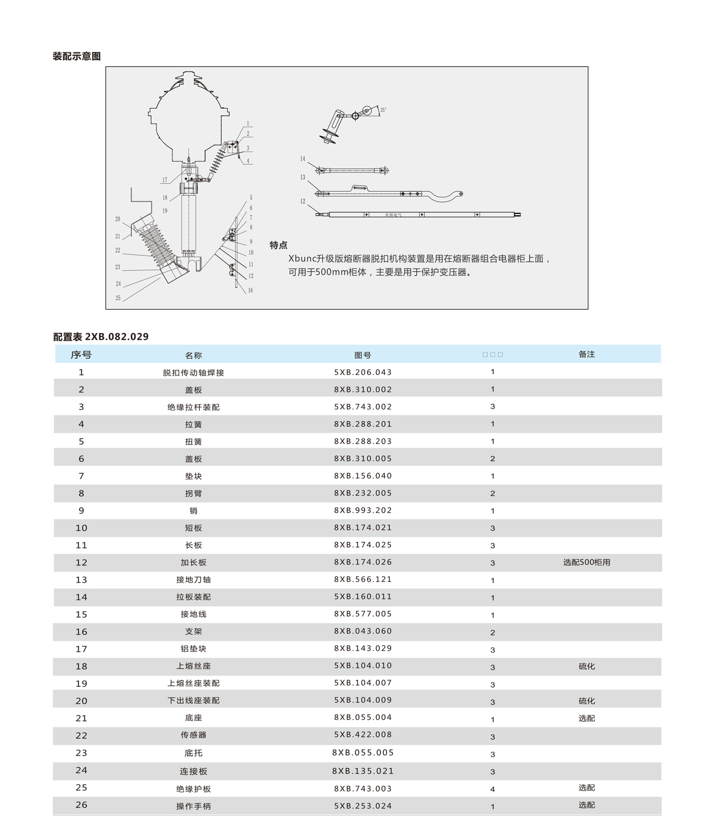 Xbunc升级版熔断器脱扣机构装置是用在熔断器组合电器柜上面,可用于500mm柜体,主要是用于保护变压器。