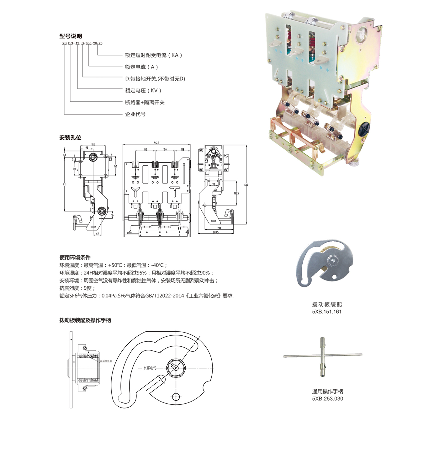 XBD-12D/630-25真空断路器为12KV SF6充气柜专用真空断路器,开关采用夹板式结构,具有开断性能可靠,使用寿命长,免维护及安装方便等忧点。XBD-12D/630-25真空断路器主要应用于相似类型的SF6充气柜,作为充气柜主要单元件,承担主体功能,具有分合额定电流.负载电流及关合和开断短路电流等性能。