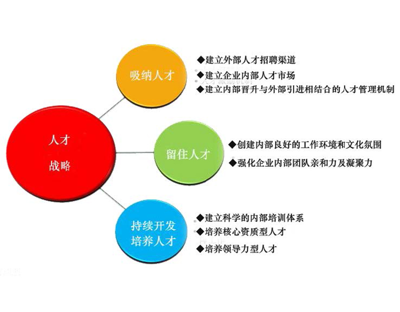 人才战略是企业经营战略的重要组成部分,一个成功的人才战略必须紧密结合企业发展战略,根据未来业务发展对人才的需求从外部环境和内部环境分析,着力打造人才的供需渠道和培养机制;并着手以吸纳人才、留住人才、善用人才、发展人才为核心思想来制定人才战略